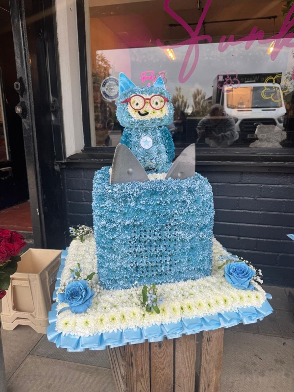 Created with care by our experienced florists, this custom tribute features fresh blooms arranged in the symbolic shape and style of a Tonie music box — colourful, joyful, and full of love. This piece brings warmth and familiarity to the service while celebrating the child’s personality and favourite songs or characters.
